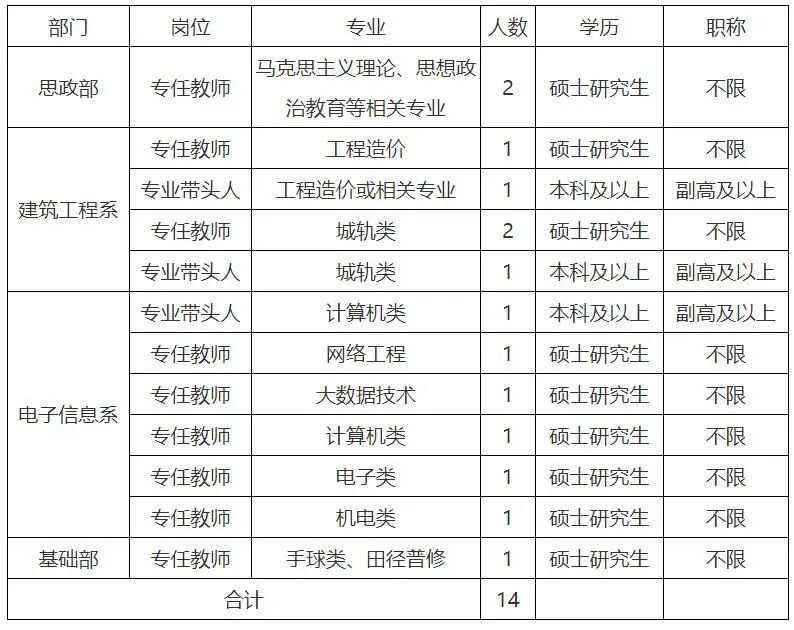 合聘网讯:学校专业发展和师资队伍建设需要,现公开向社会诚邀英才: